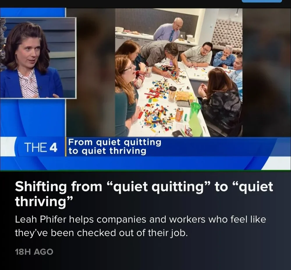 Leah returns to WCCO’s “The 4” to discuss how you can practice “quiet thriving” through practices like job crafting, making room for friendships and bringing play into the workplace.
